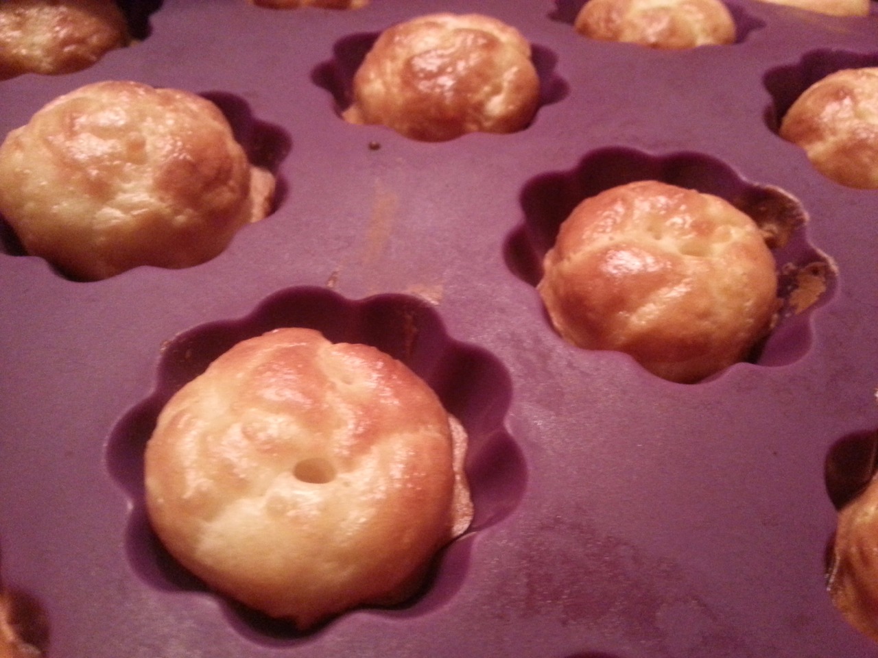 Remplir les moules avec une cuillère à café et enfourner à 180° durant 15 à 20 minutes (adapter la température et la durée de cuisson en fonction de votre four).